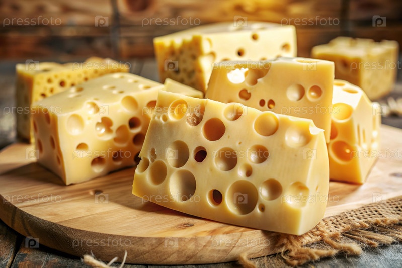 Сыр с Massadam отверстиями, кусок сыра на режущей доске