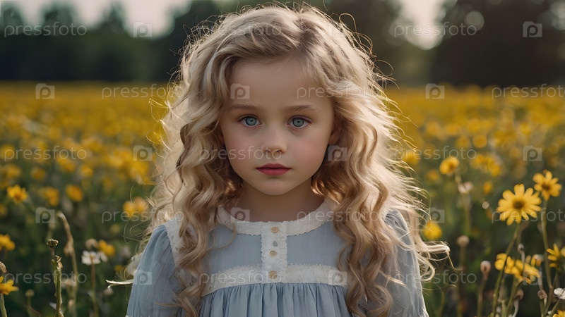 Всероссийский День семьи, любви и верности Красивая маленькая кудрявая девочка на фоне поля ромашки День святого Валентина Петра и Февронии