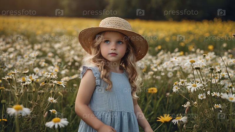 Всероссийский День семьи, любви и верности Красивая маленькая кудрявая девочка на фоне поля ромашки День святого Валентина Петра и Февронии