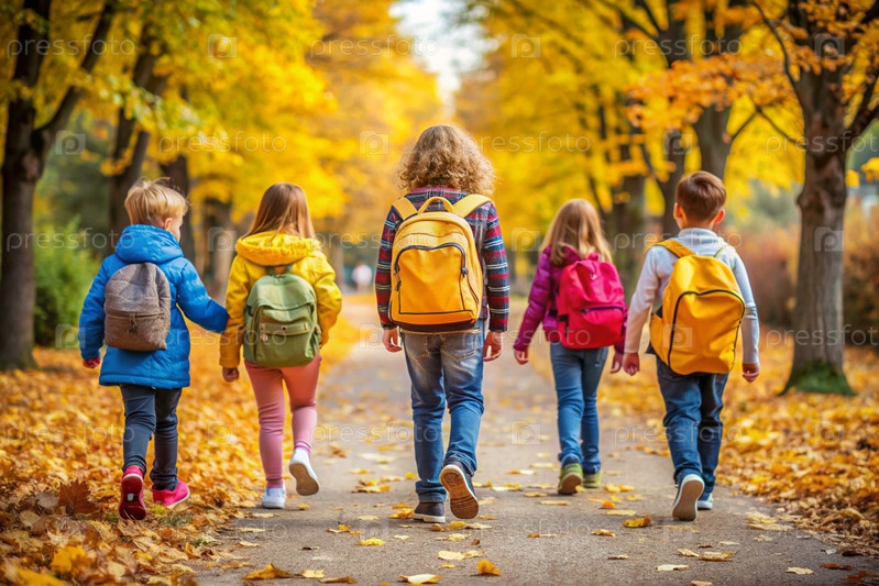 Праздник приходится на 1 сентября. Дети с желтыми рюкзаками бегут в школу. Обратный взгляд. Давайте вернемся в школу. Концепция нового учебного года в школе. Осенний день знаний