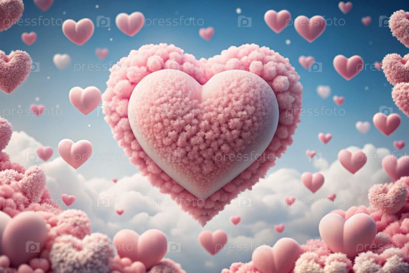 Знак на День святого Валентина. абстрактный фон. красивые нежные розовые сердца в облаках