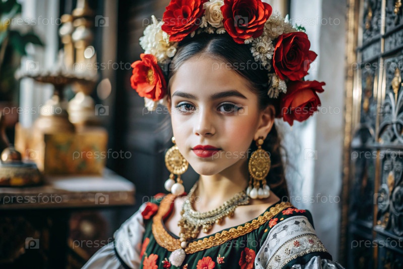 Испанская девушка в традиционном испанском национальном костюме. Перед быком. Бикоборство. Портрет символизирует традиции и культуру народа Испании