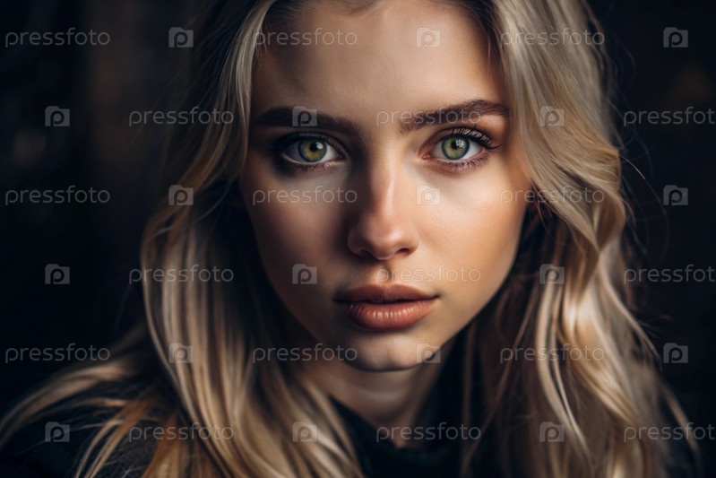 Глубокий эмоциональный портрет. Лицо молодой блондинки без макияжа, с выразительными глазами, кудрявыми волосами. Естественная женская красота