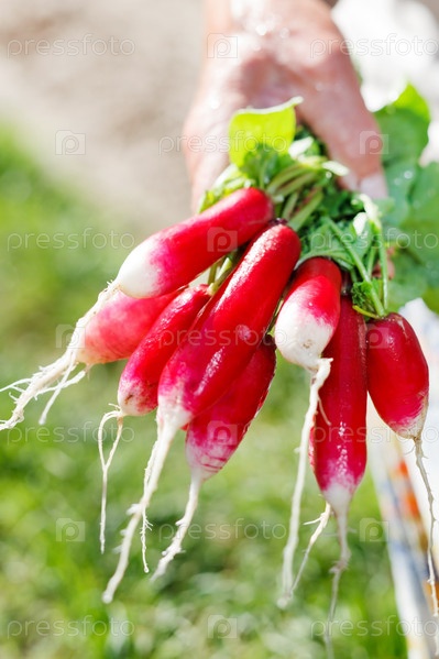 Свежий редис в руках женщины