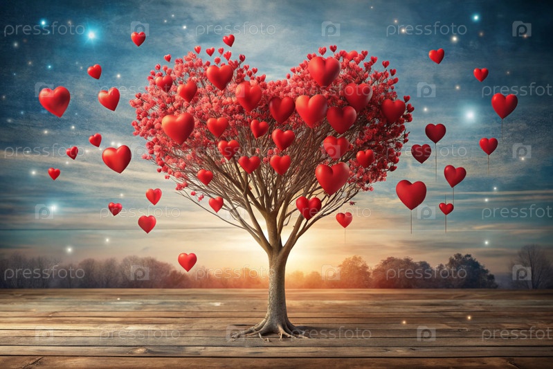 Красивое фантастическое дерево в форме сердца на фоне в стиле боке