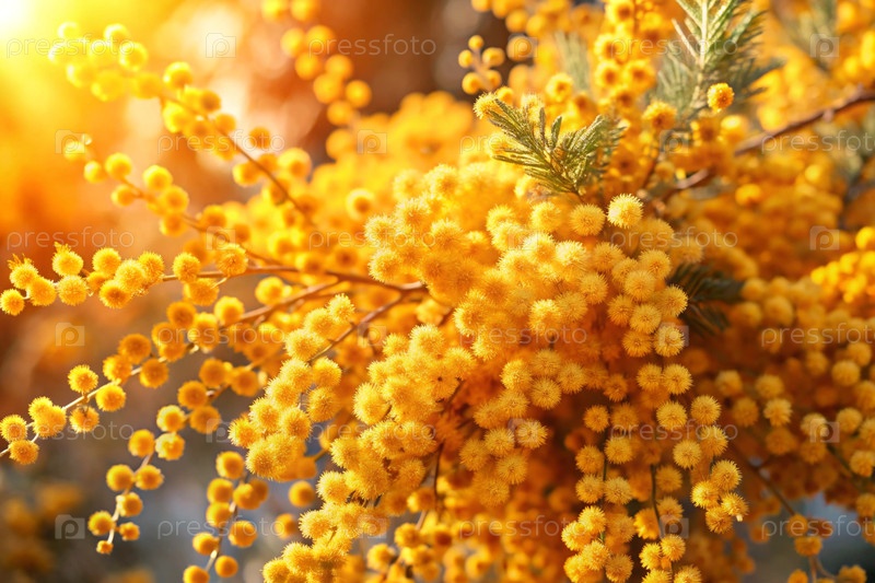 Красивый пушистый букет мимозы в вазе. Близко. Концепция домашней весны и Международный женский день 8 марта