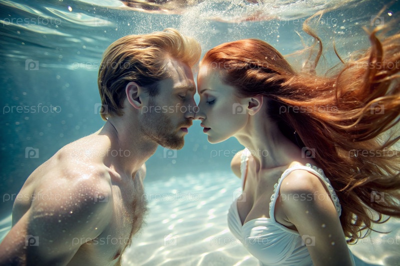 Красивые влюбленные. мужчина и женщина под водой на глубине. романтические отношения. необычное свидание