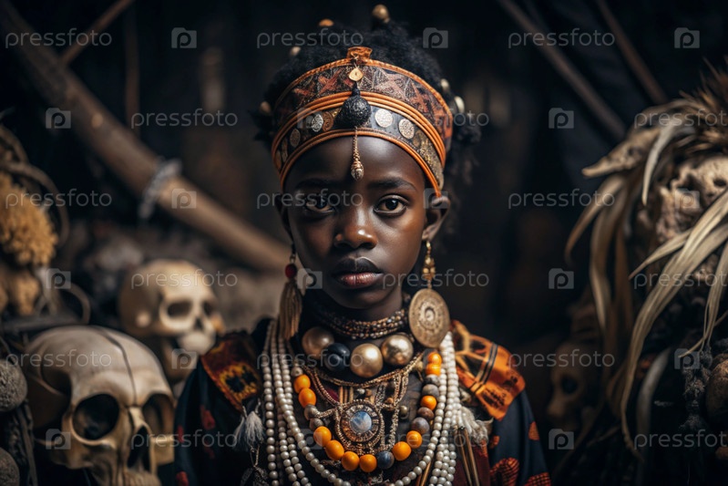 Красивая африканская девушка в традиционном национальном костюме. с костями. портрет символизирует традиции, культуру и красоту африканского народа