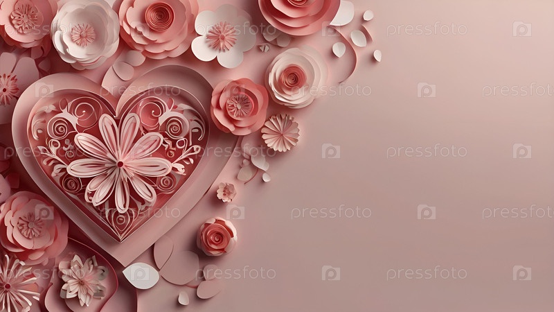Концепция Дня святого Валентина с розовым сердцем, изображающим Любовь. Стильный дизайн цветов на бумаге. Копировальное пространство