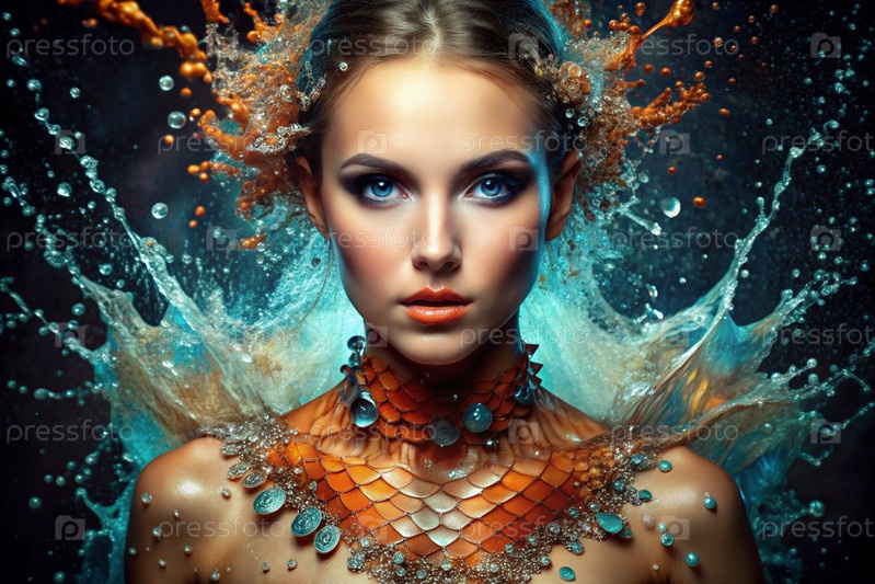 Знаки зодиака. Астрологический прогноз. Предсказания. Красивая девушка по знаку Зодиака Рыб. Понятие астрологии и гороскопа. Серия изображений 12 знаков зодиака