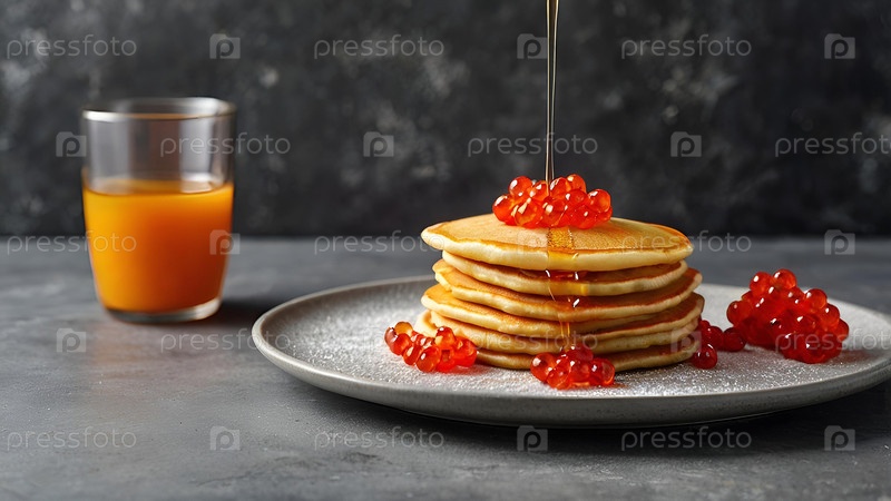 Русский праздник Масленицы. натюрморт с кучей блинчиков и красной икры