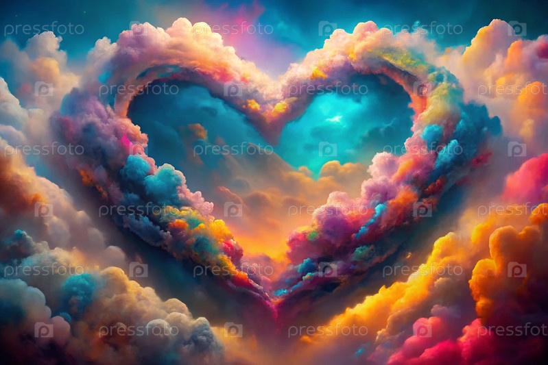 Знак на День святого Валентина Абстрактный фон Красивое, нежное и красочное сердце в облаках