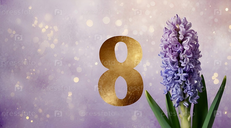 Международный женский день. праздник приходится на 8 марта. баннер, флаер. торжественный, нежный фиолетовый цветочный фон номер 8
