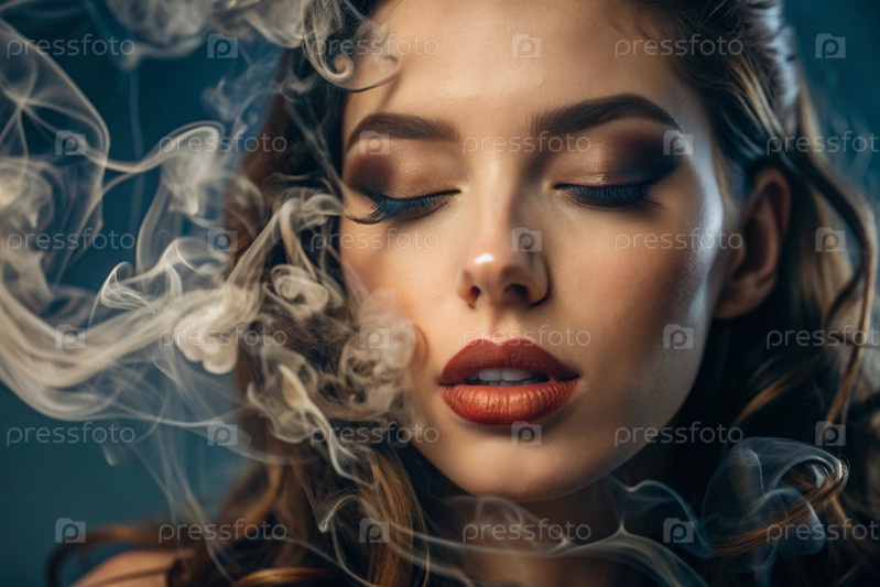Молодая красивая женщина, завернутая в дым. 'Датура', закрывающая лицо прекрасной девушки