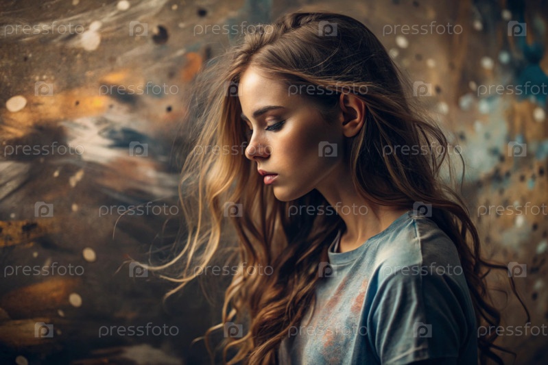 Портрет красивой молодой девушки с продуманным взглядом. волосы развиваются и создают ощущение легкости и естественности