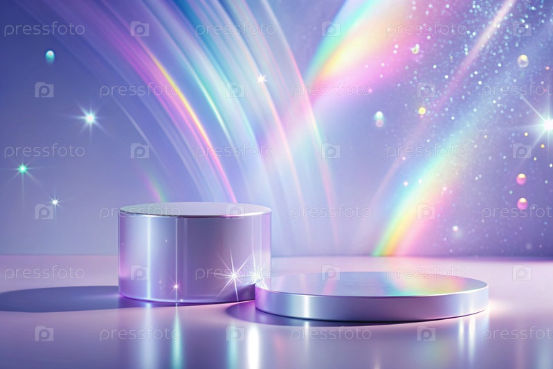 Пустой цилиндрический подиум со сверкающими кристаллами при преломлении света на минималистическом фоне, стенд для демонстрации моделей косметики и товаров