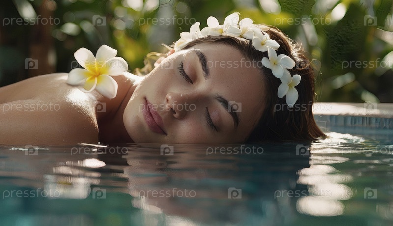 Близко. красивая молодая женщина в бирюзовом бассейне. концепция здорового образа жизни, отдых, расслабление, туризм, косметические спа-процедуры в курорте красота, гордость