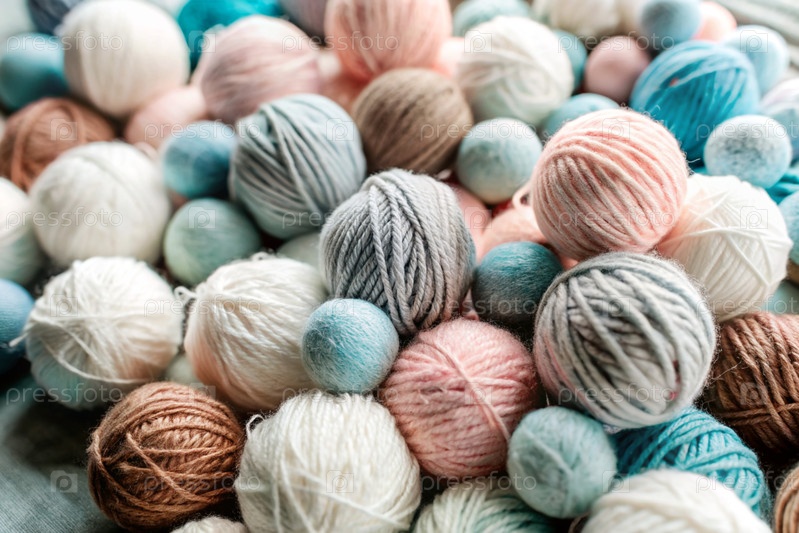 Фон сделан из шариков шерстяной пряжи. Игровая работа, текстиль, вязание. Зимний сезон, малый бизнес, ручная одежда
