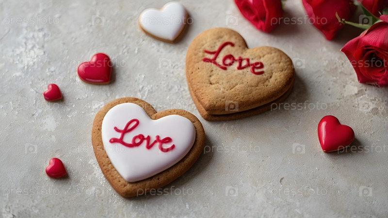 Домашние имбирные печенье в форме сердца с красным сахаром вкусное сердце бисквита из имбиря на сером бетонном фоне свежевыпеченный пряник для дня святого Валентина