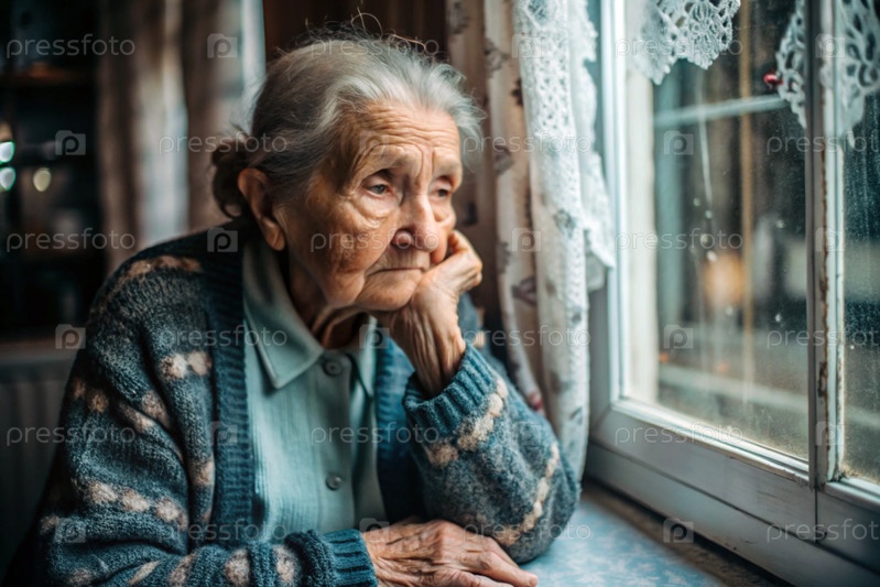 Минимализм.Портрет пожилой женщины, пенсионерки, концепция жизни пожилых людей, здоровье, одиночество и потеря памяти