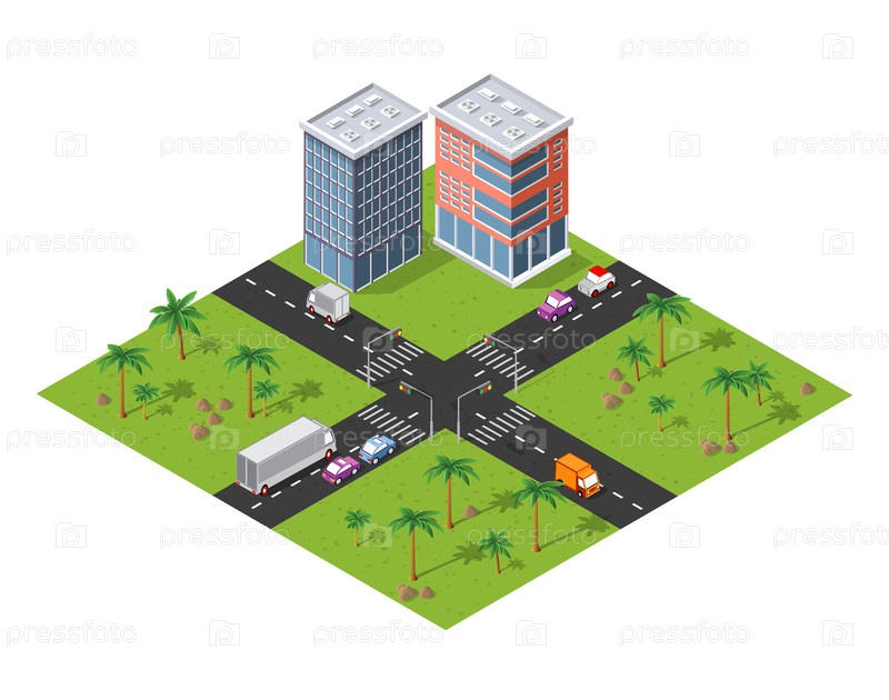 Изометричный городской мегаполис с видом на городскую инфраструктуру,