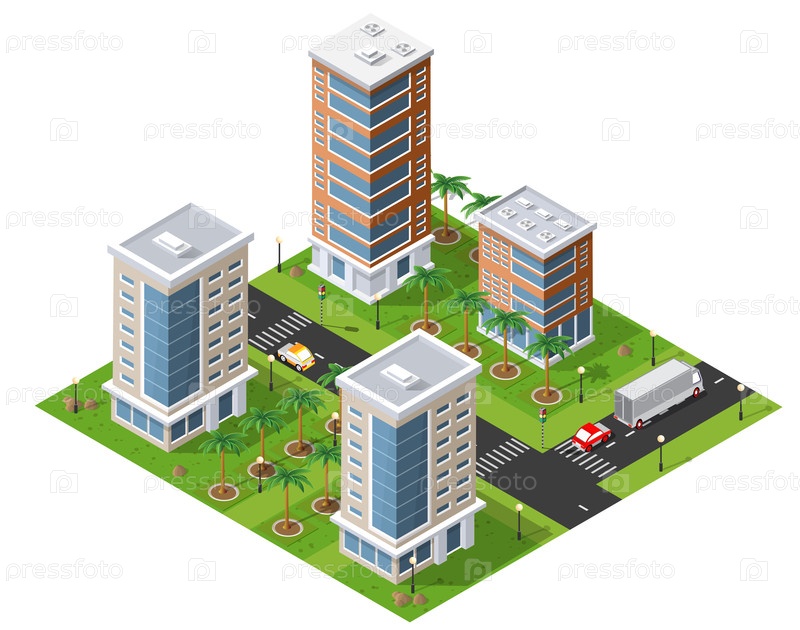 Изометричный городской мегаполис с видом на городскую инфраструктуру,