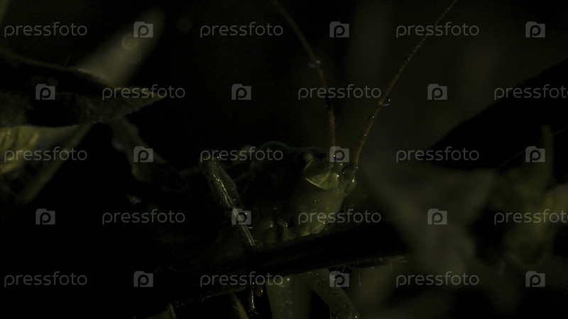 Закрытие зеленой саранчи среди травы.Креативность.Зелёная саранча или саранча в траве летнего луга.Макрокосмос в глубине зелёной травы