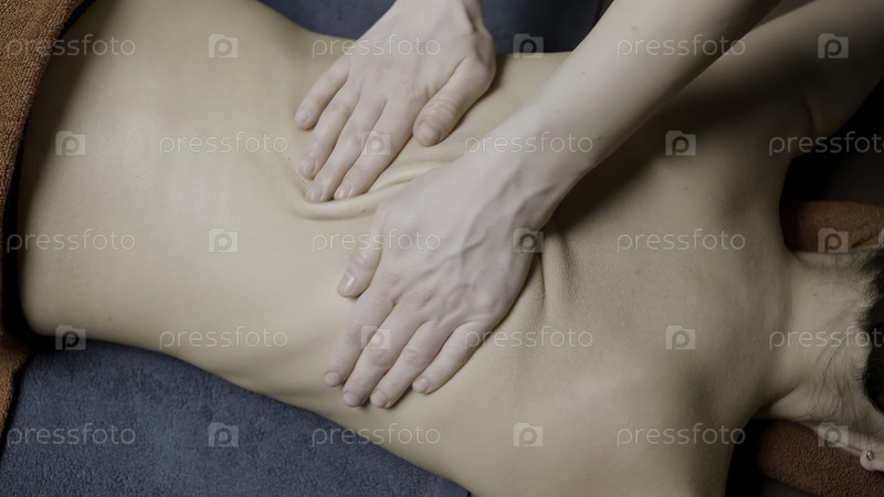 Молодая женщина занимается массажем в спа-центре. продолжайте. закрывайте женщину, расслабляющуюся во время массажа спины, лежа на масажном столе в замедленном режиме