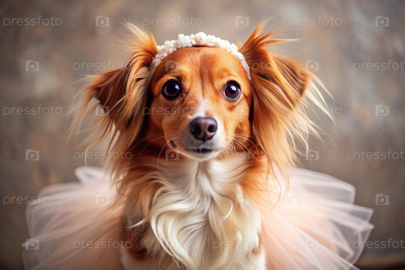 Красивый портрет милой имбирной собаки, одетой в розовое туту