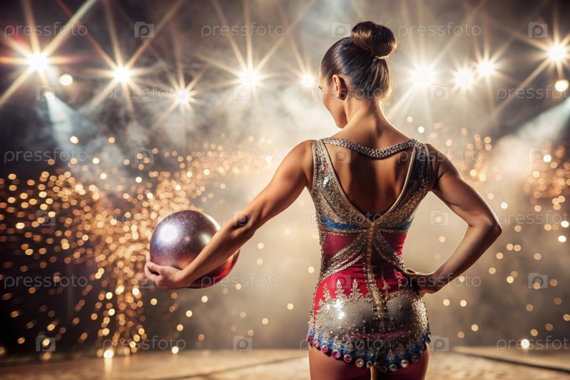 Ритмическая гимнастика крупный план красивая гимнастка с мячом в фокусе
