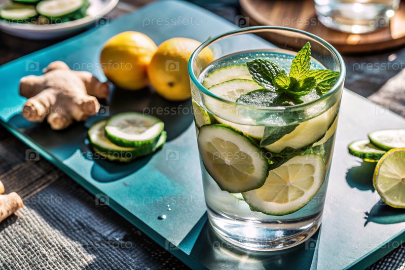 Детоксикация воды огурцом, лимоном, лаймом, имбирем и мятой для здорового питания