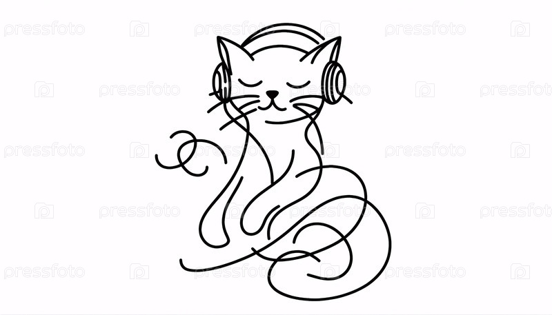 Минималистское линейное искусство кошки с наушниками, созданное Ай