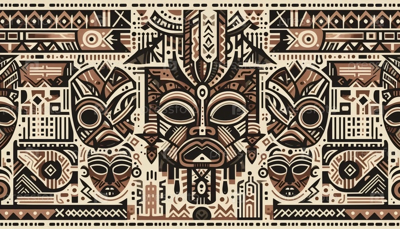 Смелая племенная маска и бесшовный шаблон символов, сгенерированные Ai image