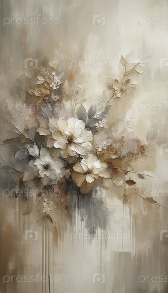 Нейтрально окрашенный абстрактный ботанический настенный рисунок created by Ai