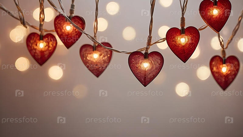 Концепция Дня святого Валентина, баннер с гирляндами в форме сердец и волшебными огнями для праздника, наполненного любовью