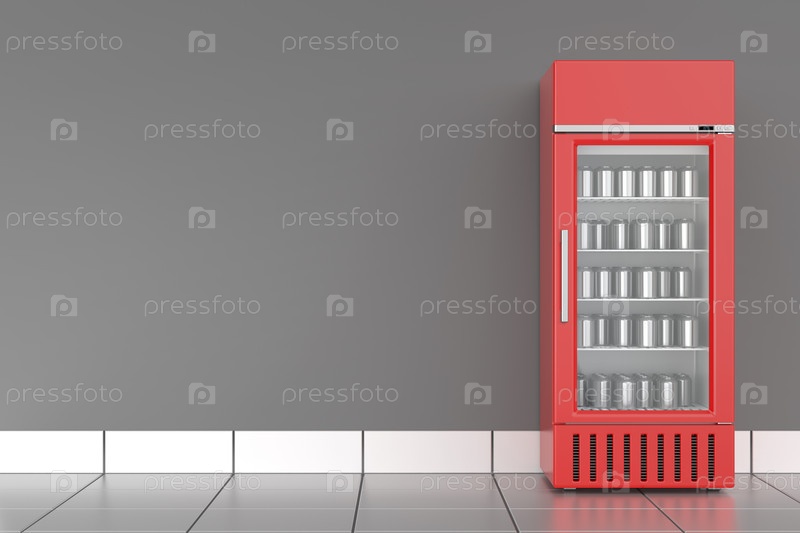 Красный холодильник с серебряными банки