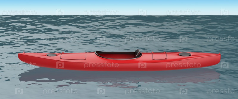 Красный пластиковый каяк на воде