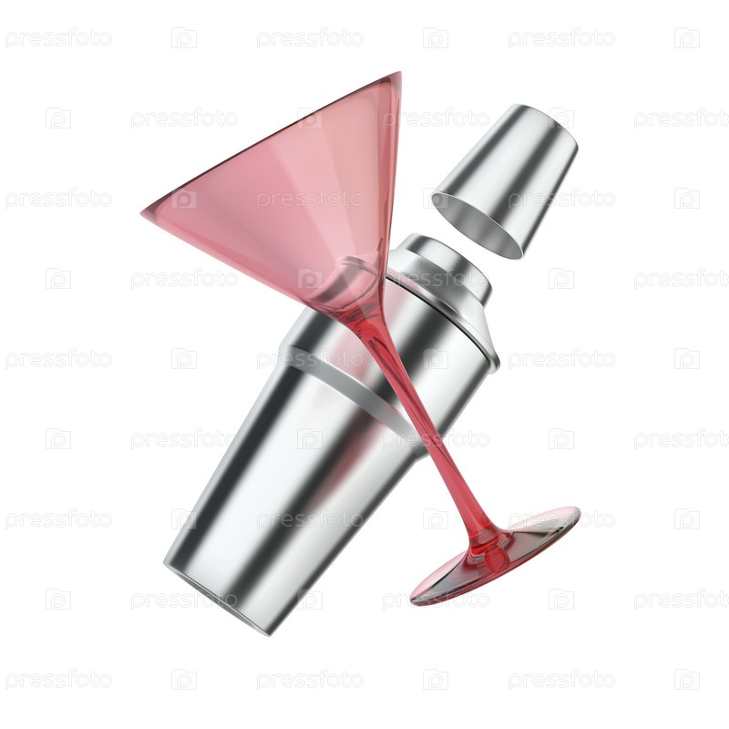 Серебряный шейкер и красная коктейльная чашка