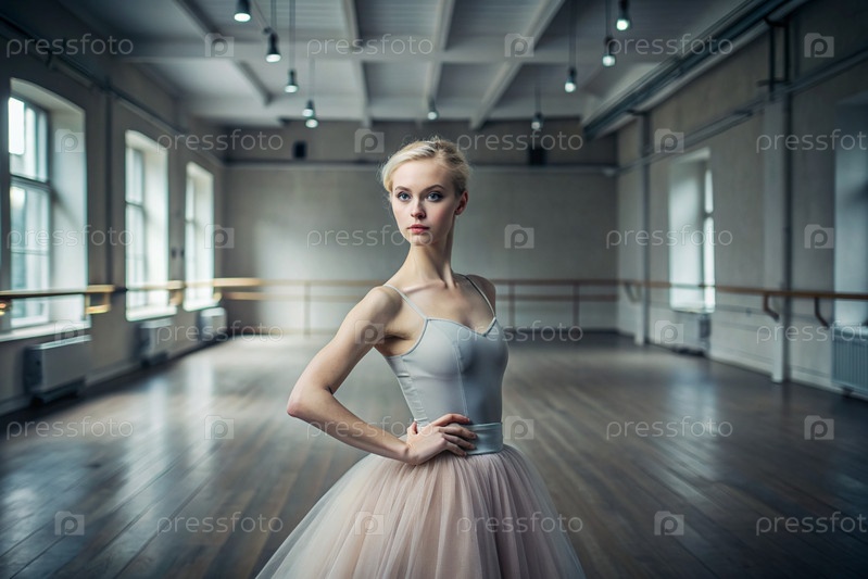 Портрет красивой молодой балерины в балетном зале, сияние русского балета, балерина в туту на фоне репетиционного зала