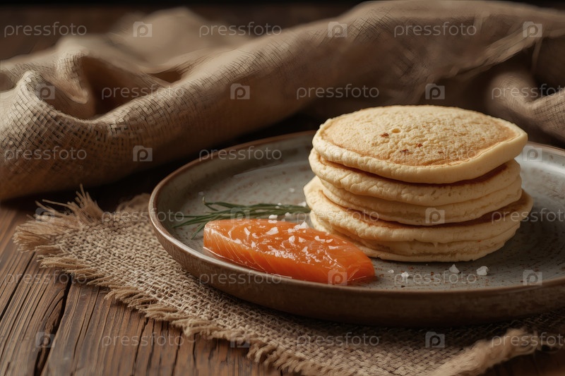 Вкусные блины с соленой красной рыбой.Концепция российского праздника Масленицы