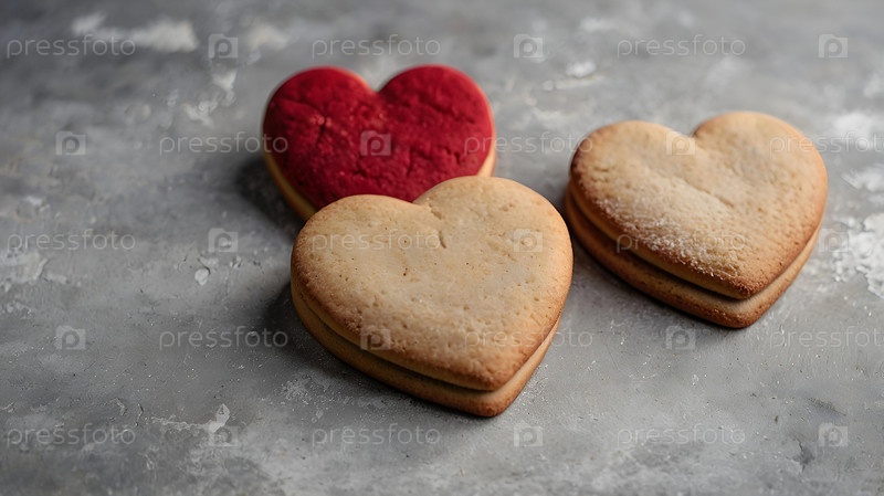 Домашние имбирные печенье в форме сердца с красным сахаром вкусное сердце бисквита из имбиря на сером бетонном фоне свежевыпеченный пряник для дня святого Валентина