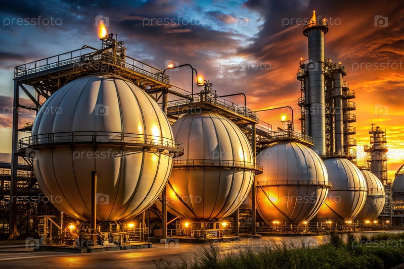 Белые сферические резервуары для хранения нефти на открытом нефтяном Наборные баки для нефтепродуктов - это оборудование для промышленного сферного хранения нефти