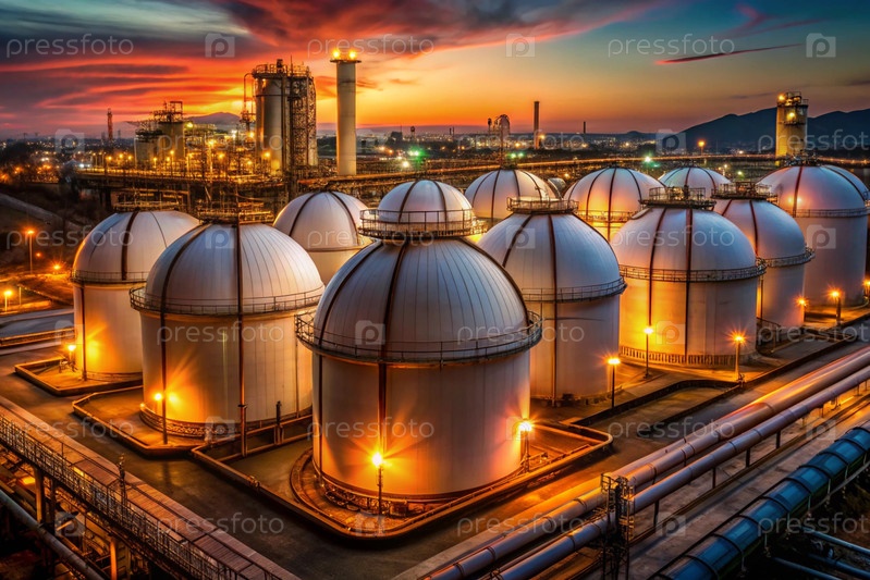 Белые сферические резервуары для хранения нефти на открытом нефтяном Наборные баки для нефтепродуктов - это оборудование для промышленного сферного хранения нефти