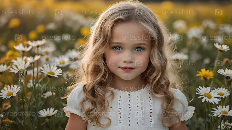 Всероссийский День семьи, любви и верности Красивая маленькая кудрявая девочка на фоне поля ромашки День святого Валентина Петра и Февронии