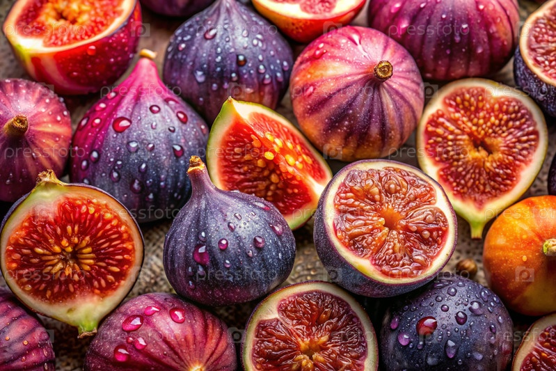 Есть много инжиров с деликатной фиолетовой кожей и в разрезе. рамка, показывающая естественную текстуру и цвет. закрытие фруктов