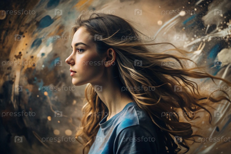 Портрет красивой молодой девушки с продуманным взглядом. волосы развиваются и создают ощущение легкости и естественности