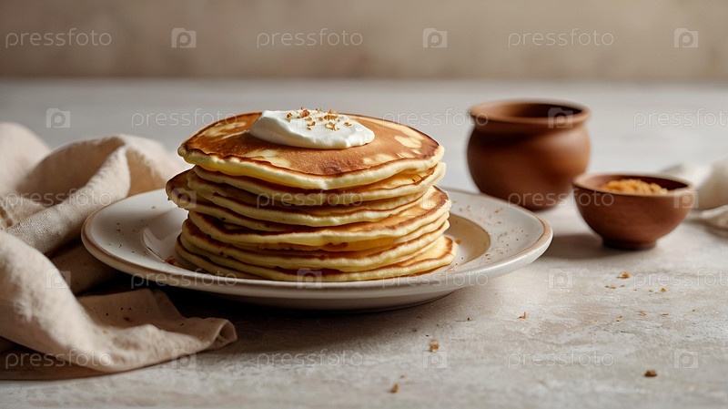 Вкусные блины с кислой смесью.Блины упаковываются в большую кучу.Концепция русского праздника Масленицы