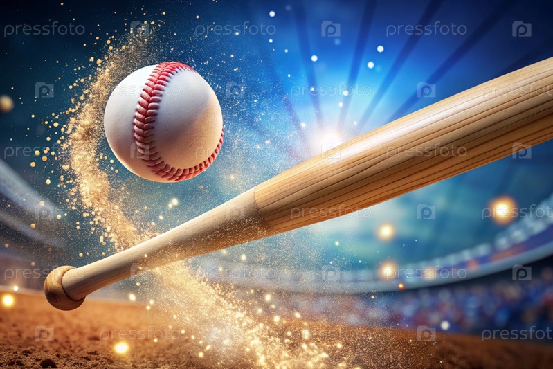 Американский бейсбол. момент, когда бейсбольная бита бьет мяч в спортивной командной игре. концепция летних олимпийских видов спорта