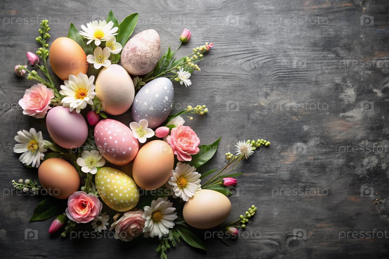 Красивый фон с пасхальными яйцами и весенними цветами