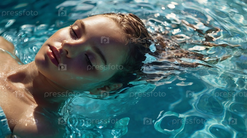Близко. красивая молодая женщина в бирюзовом бассейне. концепция здорового образа жизни, отдых, расслабление, туризм, косметические спа-процедуры в курорте красота, гордость